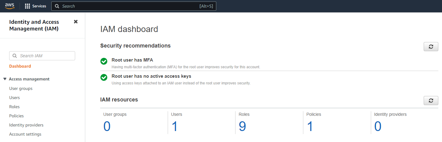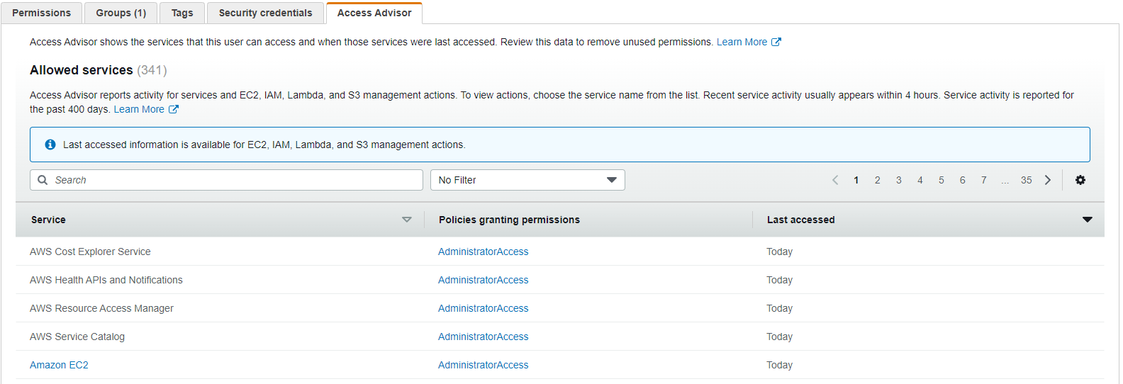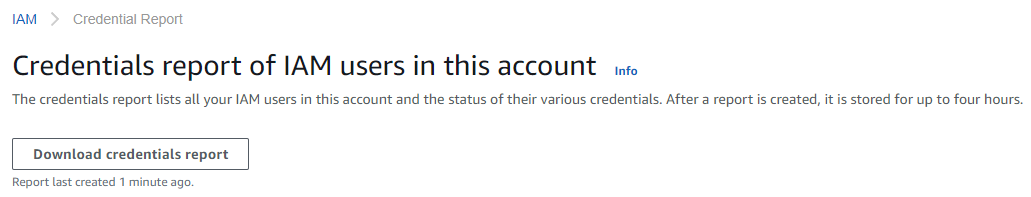 현재 IAM의 상태를 확인하고 관리하기위해 IAM 보안도구를 사용할 수 있다. IAM의 보안도구에는 자격 증명 보고서와 액세스 관리자가 있다. 자격 증명 보고는 IAM 유저들의 정보와 인증상태를 확인할 수 있다. 액세스 관리자는 사용자의 실제 AWS 서비스 접근 기록을 확인할 수 있다.