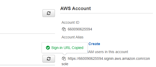 새로 생성된 사용자로 로그인하기 위해서는 IAM 페이지 우측에 있는 로그인 URL에 접속하여 사용자 생성시 입력한 정보로 로그인하면 된다.