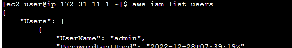 IAM Role을 적용한 후에는 해당 역할로 aws 명령어가 실행되는것을 확인할 수 있다.