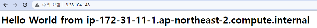 그리고 생성된 인스턴스의 Public IP 주소로 접근하면 위처럼 서버가 성공적으로 생성되고 커맨드라인이 실행되어 기본 페이지가 보이는것을 확인할 수 있다.