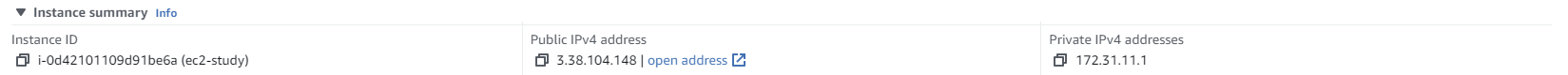 ec2-study라는 이름의 EC2 인스턴스를 생성하려고 한다. EC2 생성시에는 OS 유형, 인스턴스 타입, 키페어, 네트워크, 스토리지 등을 설정할 수 있다. 일단 모든 설정값을 기본으로 하였다.