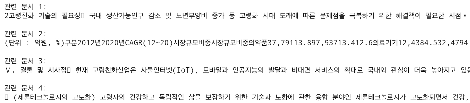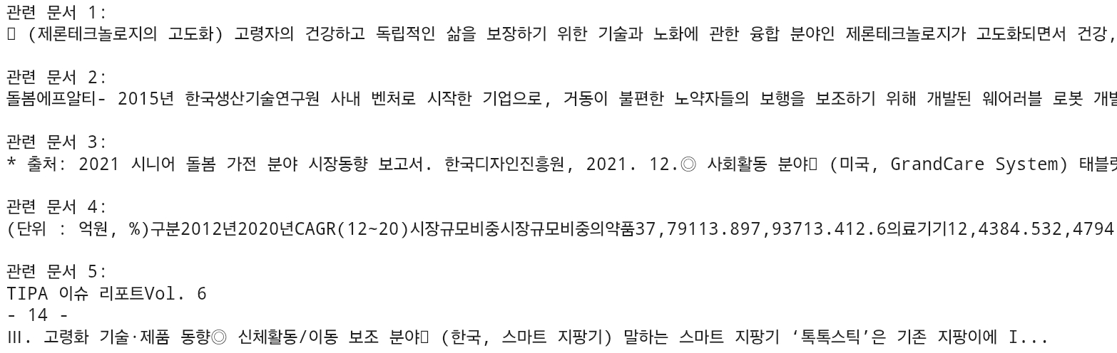 reranked_docs = rerank_documents("고령화 시대에 어떤 제품들이 개발되고 있는지 사례를 알려줘", reference_document_list)