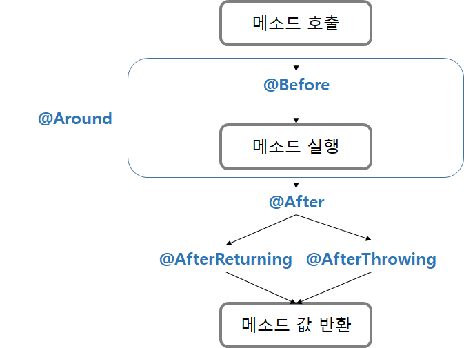 @Around는 AOP가 적용될 메소드의 시작부터 끝까지 전반적인 시점을 모두 관리한다.